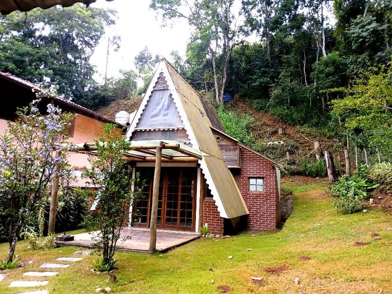 Charmoso Chalé! Duplex. Sala com cozinha integrada, banheiro com teto de vidro, quarto com pequena sacada. Ótimo espaço externo. Minutos do centro de Itaipava em rua residencial sem saída. Muito verde em meio a natureza da serra.