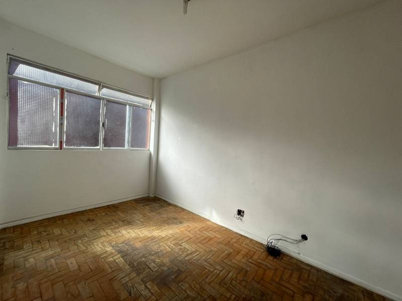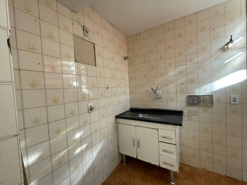 O apartamento possui um quarto, sala, cozinha e banheiro.